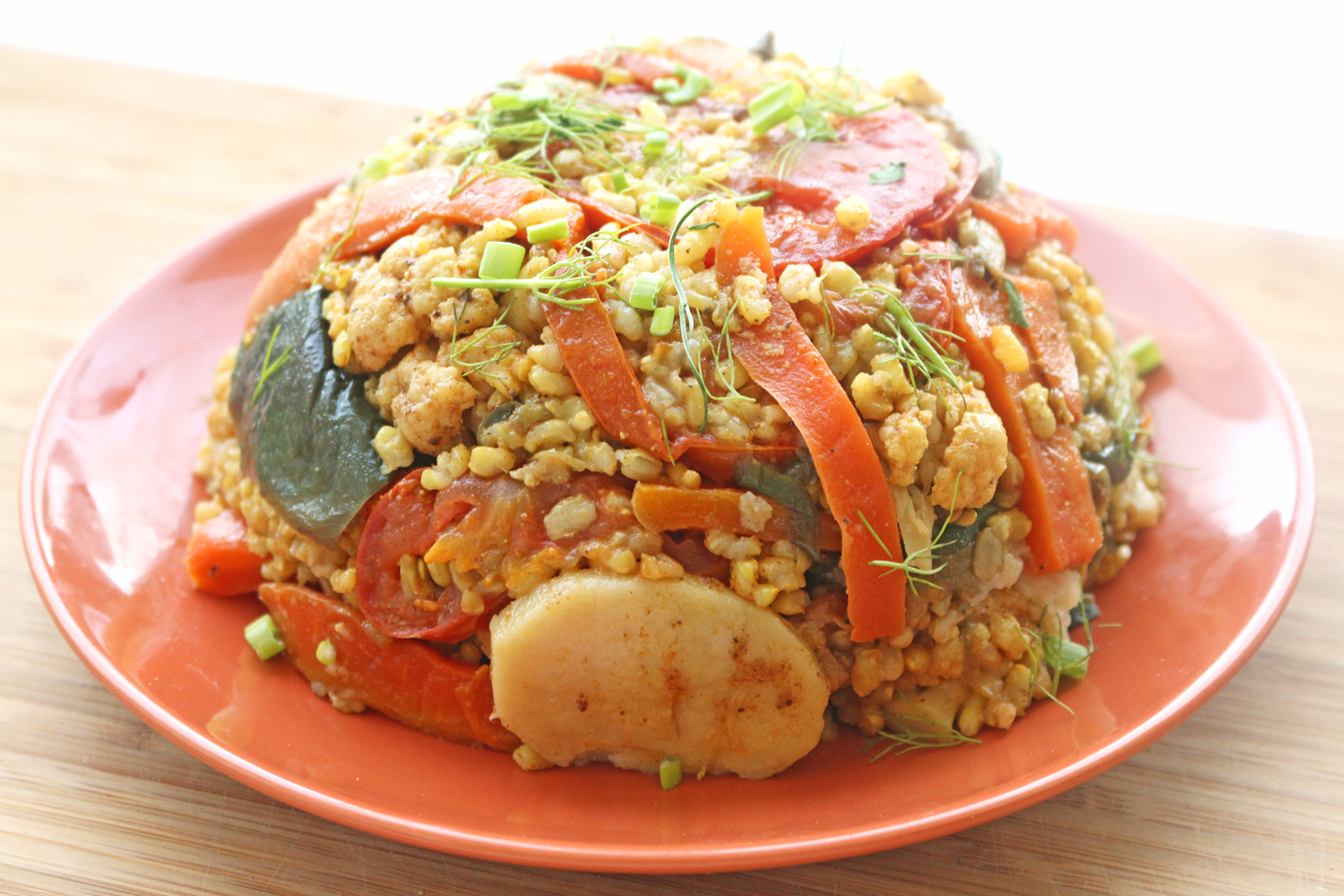 A vegan take on a popular Levantine dish that literally means "upside down". The perfect centerpiece meal for special occasions!